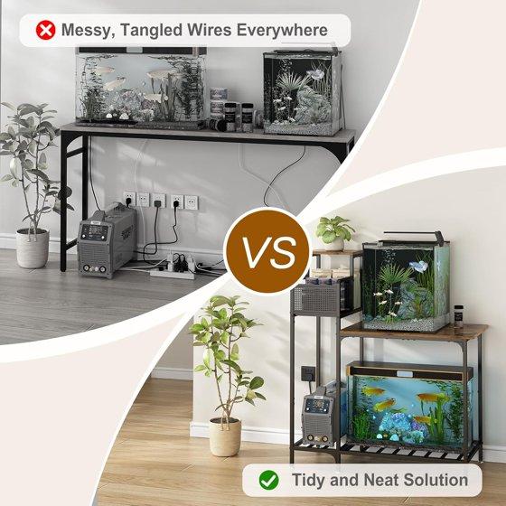 - Vertical Space Optimization: Maximize your vertical space with this fish tank stand.The top tier comfortably hosts a large aquarium, while the bottom tier accommodates a standard 10-20 gallon aquarium.The two storage layers on the left side are designed specifically for fish food and other accessories, promoting an organized and tidy setup.