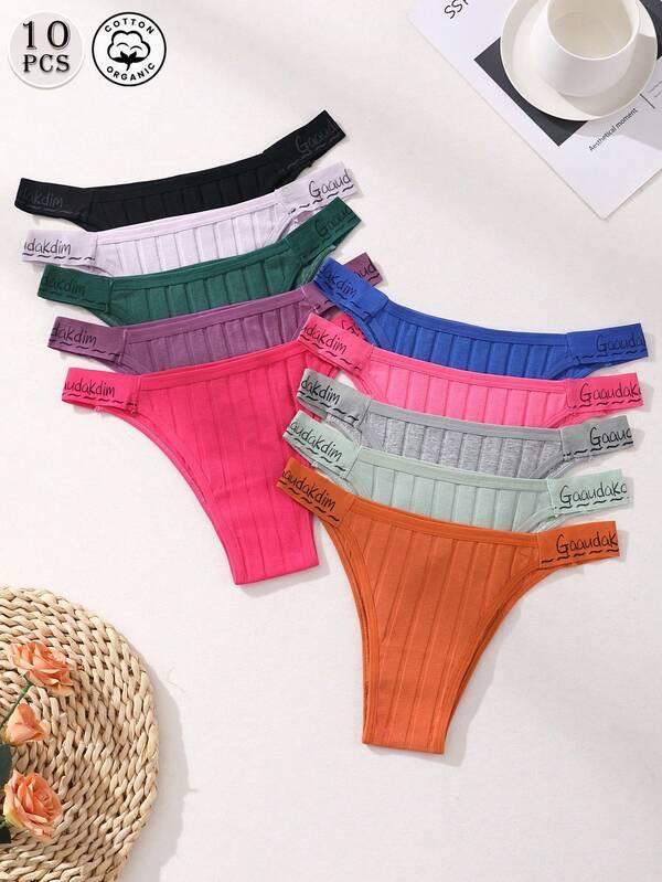 10 PCS Sexy Low Rise Seamless Letter Belt Bikini Panties For Women Soft Breathable Ribbed Cotton Briefs - Comfortable Underwear, Daily Wear & Sports Yoga Lingerie