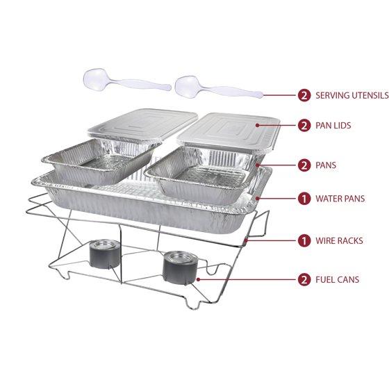 10-Piece Disposable Chafing Buffet Set with Fuel-Food Warming Kit-Catering, Parties & Events-Includes Silver Racks, Aluminum Trays, Utensils & Gel Fuel, Party Dimensions Brand.