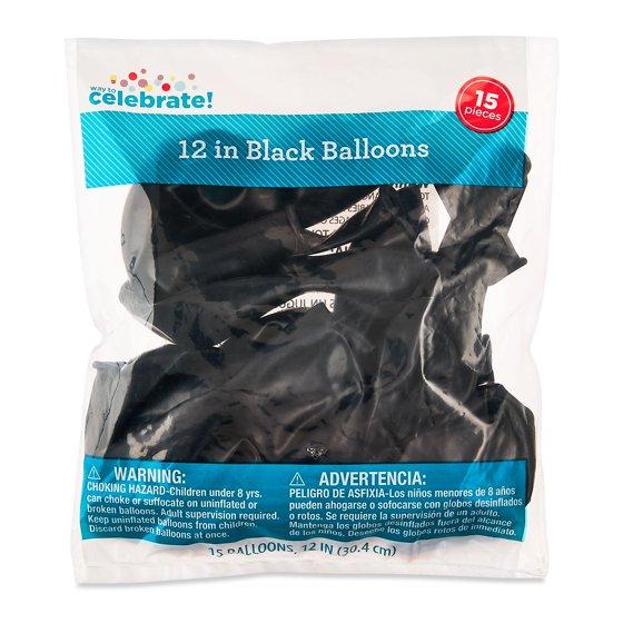 - Way To Celebrate 12" Black Latex Balloons, 15 Pieces