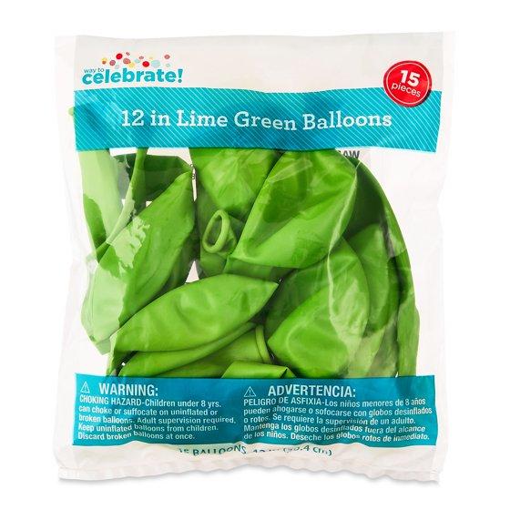 - Way To Celebrate 12" Lime Green Latex Balloons, 15 Pieces