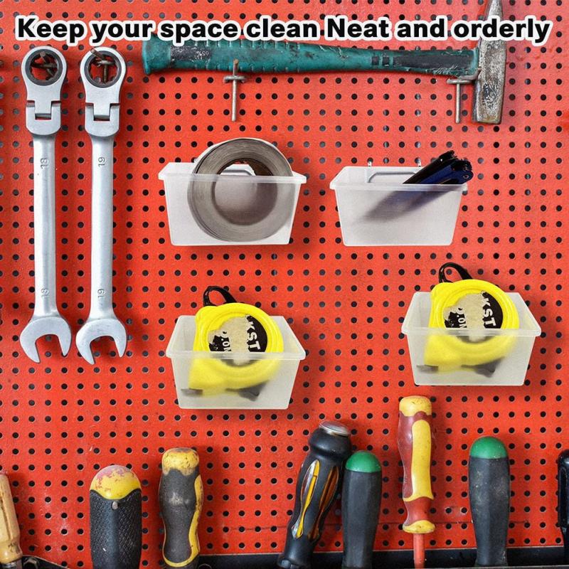 - [Suitable for Most Board Walls]These pegboard boxes are universal in size and fit most standard size pegboards, including 0.64cm, 0.64cm and 0.32cm thick or smaller, with a hole diameter of 0.64cm or less, compatible with metal and Non-metallic pegboard. The pegboard box set takes full advantage of the entire pegboard and creates more storage space.