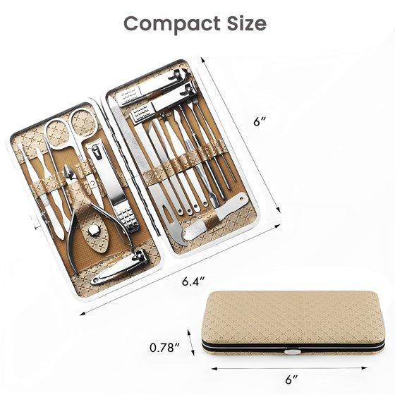 19 PCS Nail Clippers Manicure Set, Stainless Steel Professional Grooming Pedicure Tool Kits with Portable Case, Khaki