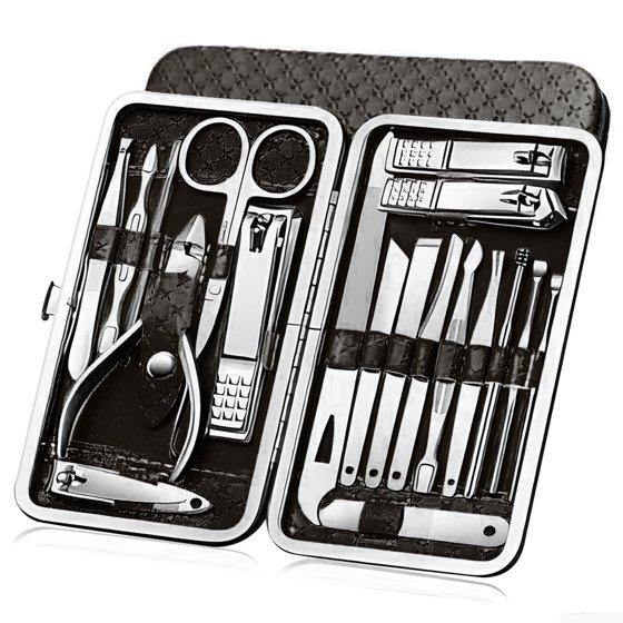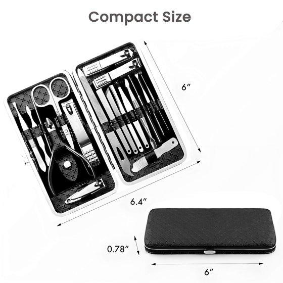 19 PCS Nail Clippers Manicure Set, Stainless Steel Professional Grooming Pedicure Tool Kits with Portable Case, Black