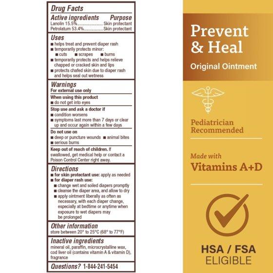 A+D Original Diaper Rash Ointment forms a protective barrier to help prevent diaper rash. This vitamin A and D ointment is gentle and effective on precious skin.