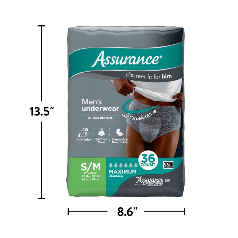 (2 pack) Assurance Men's Incontinence Underwear, S/M , Maximum Absorbency (36 Count)