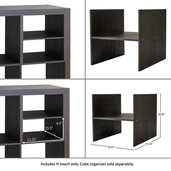 Unlock the full potential of cube storage with the Better Homes & Gardens H Shelf Cube Organizer Insert and the rest of Better Homes & Gardens’ line of cube organizer accessories and inserts. The H divider is designed to fit seamlessly into Better Homes & Gardens Cube Storage Organizer (sold separately) compartments. Effortlessly divide a cube shelf, horizontally or vertically, into two functional sections, to make the most of every inch of available space.