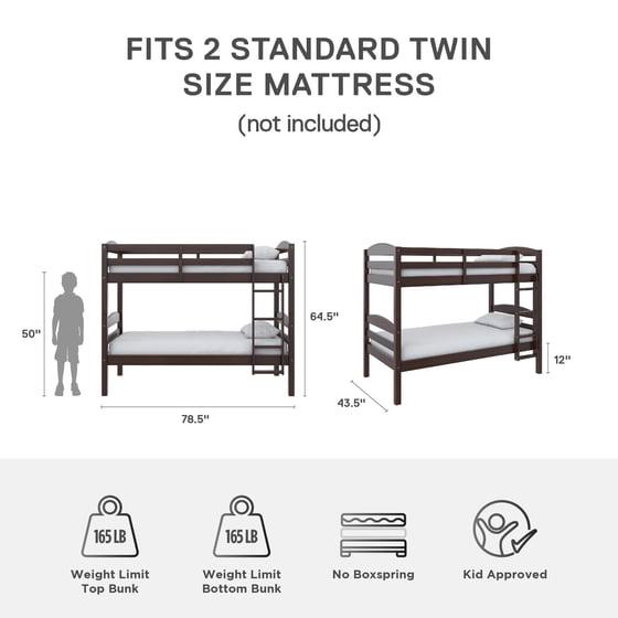 (2 pack) Better Homes & Gardens Leighton Solid Wood Twin-over-Twin Convertible Bunk Bed, Mocha