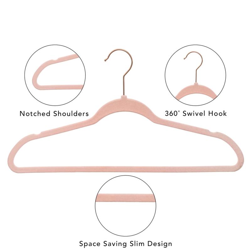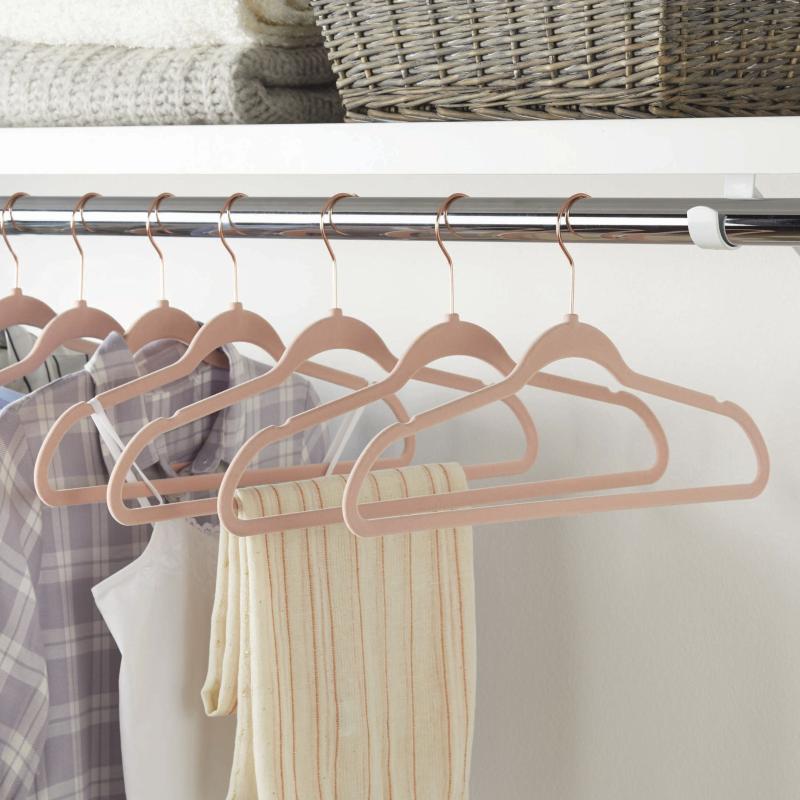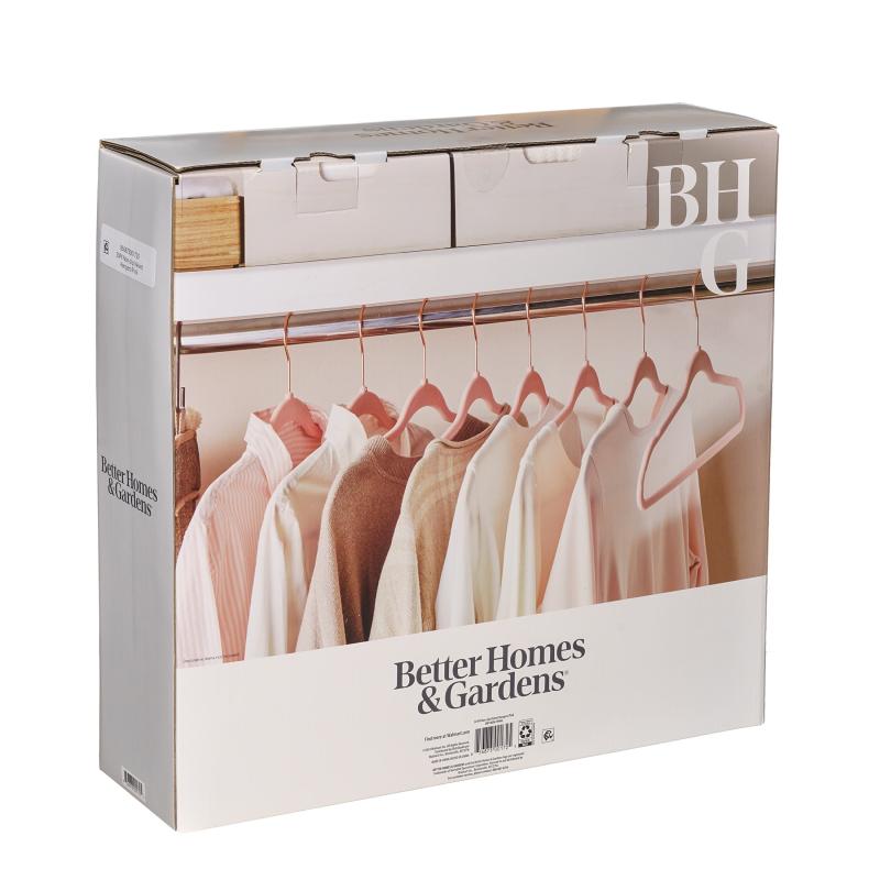 Organize your clothing with both style and functionality using the Better Homes & Gardens Non-Slip Velvet Clothing Adult Hangers. Designed to effectively keep your closet organized with slim, space saving construction, these stylish pink hangers are also non-slip with non-damaging. This 30-pack of non-slip hangers is thoughtfully designed two side indentations to help keep your clothes in place. These elegant and modern non-slip hangers are perfect for any space where you hang garments from kids' rooms to your chic primary suite or walk-in. Use in hallway closets or guest rooms to impress all that come into your home, and happily say goodbye to the days of shabby, mismatched hangers. Expertly care for your clothing and present your items in a way that gets you excited to dress in the morning. Use the Better Homes & Gardens Non-Slip Velvet Clothing Hangers for contemporary flair you're sure to appreciate!