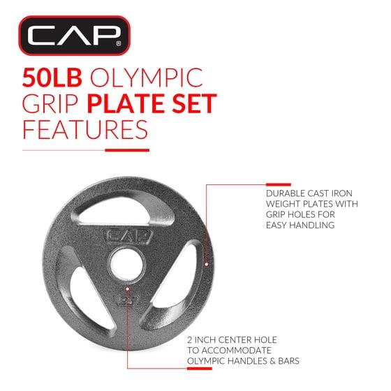 (2 pack) CAP Barbell 50 lb Olympic Grip Plate Weight Set (10x4, 5x2)