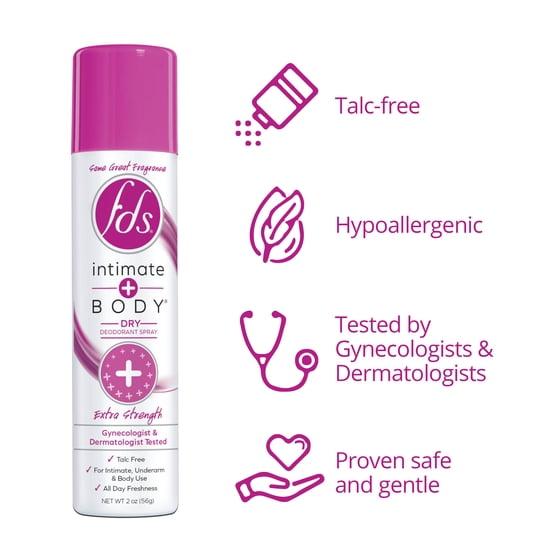 - FDS Intimate + Body Dry Feminine Deodorant Spray, Extra Strength, 2 oz