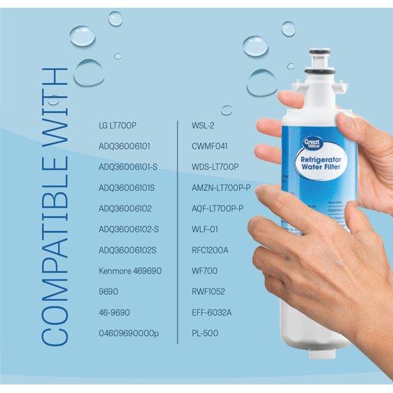 (2 pack) Great Value Replacement Refrigerator Water Filter, LG LT700P and Kenmore 46-9690, 1 Pack