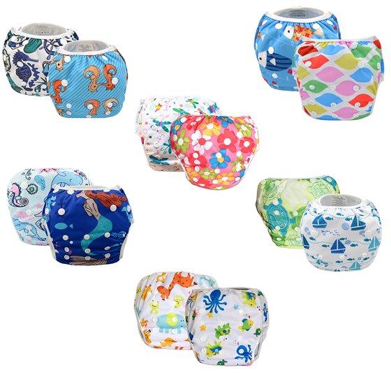 - Reusable swim diaper for ages 0 to 2 years with cute prints