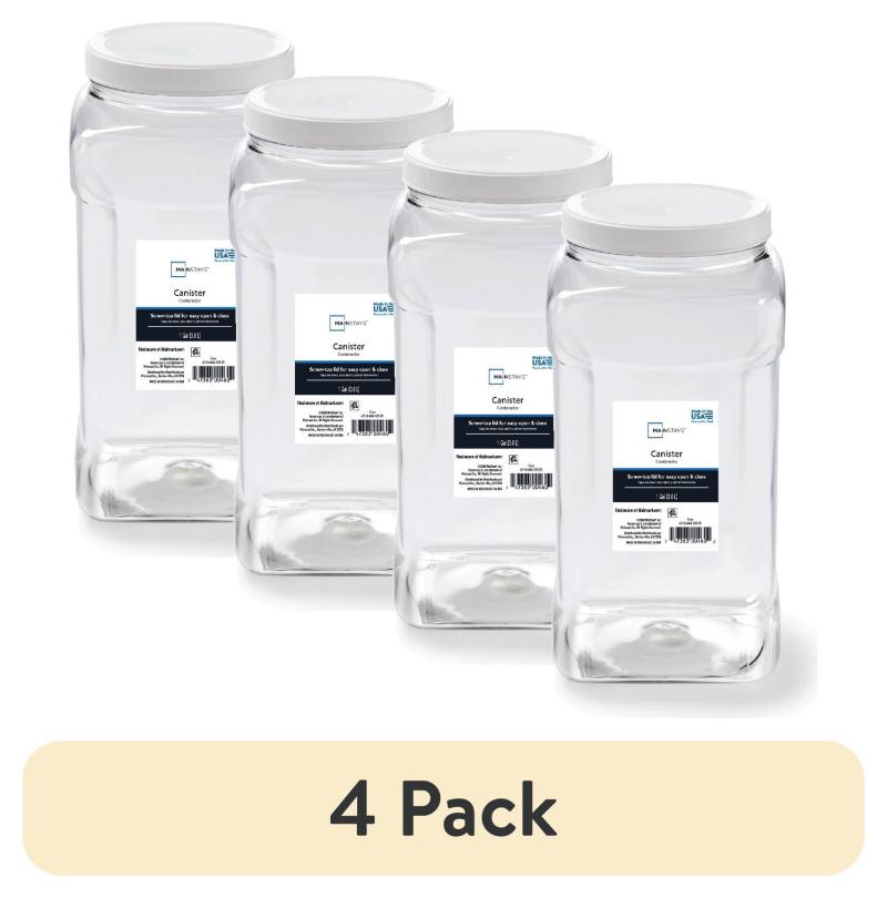 (4 pack) Mainstays 4-Quart Clear Plastic Canister with White Twist-Top Lid (1 Each) 5.83" x 5.16" x 10.20", Well Suited to Pantry Organization and Food Storage
