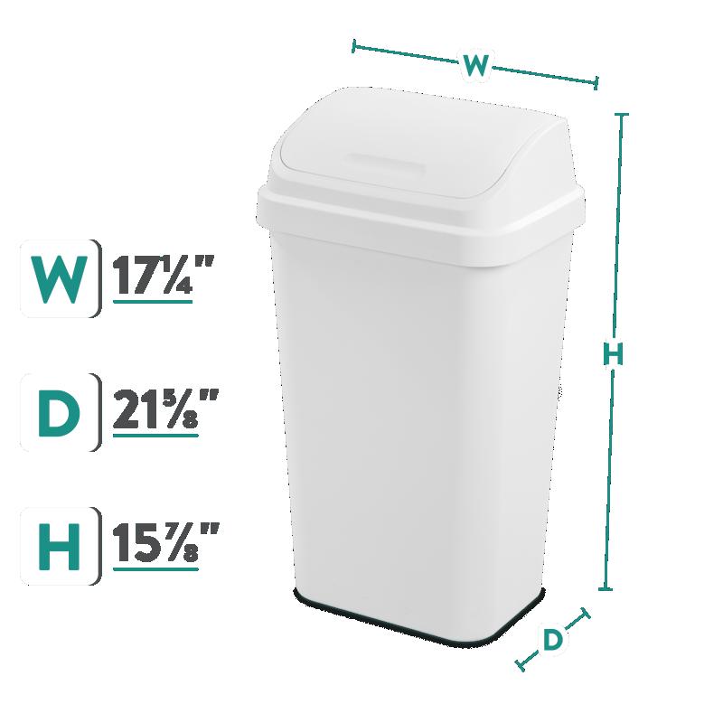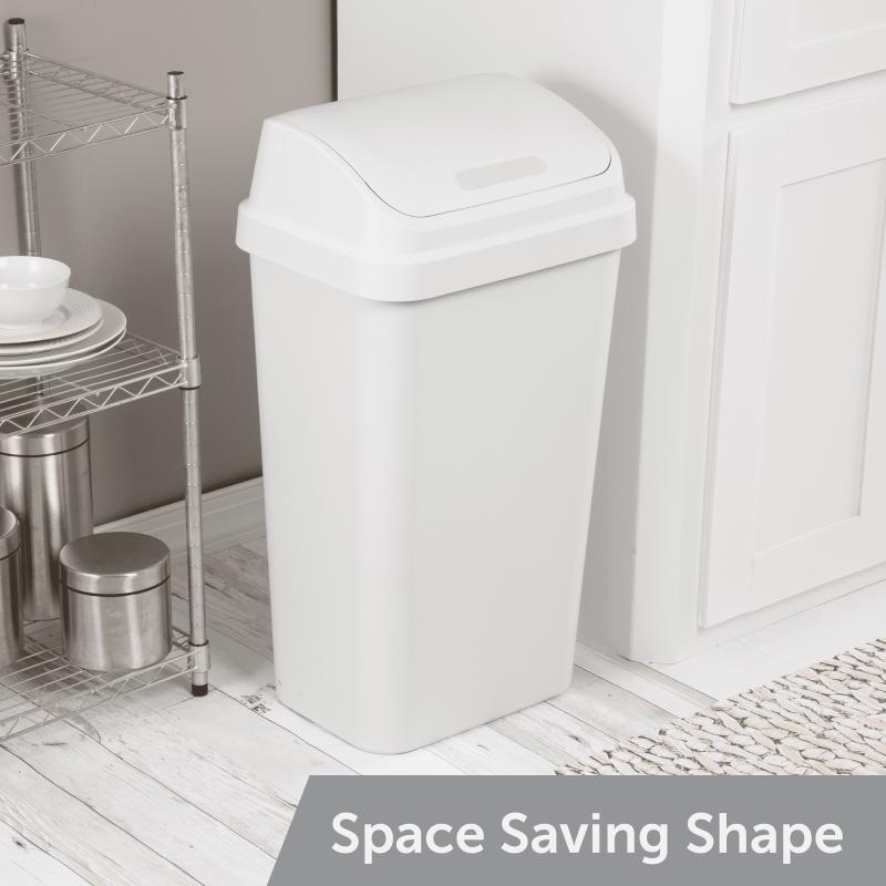 - Sterilite Kitchen Trash Can, 13 Gallon Plastic Garbage Bin with Swing Top Lid, White