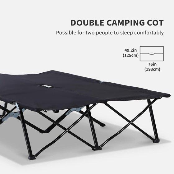 2 Person Folding Camping Cot for Adults, 50" Extra Wide Outdoor Portable Sleeping with Carry Bag, Elevated Bed, Beach Hiking, Black