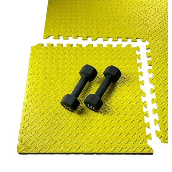 - Protective workout flooring - Durable, non-skid textured tiles protect floors while creating a comfortable workout space