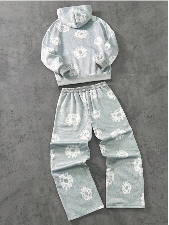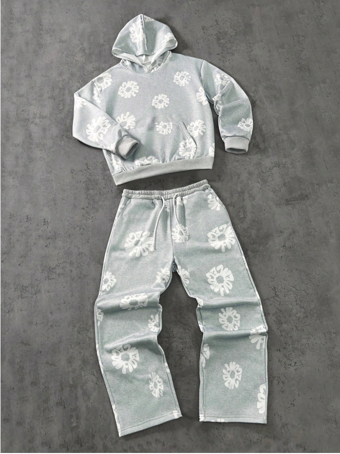 2pcs/Set Floral Print Hoodie Sweatshirt And Straight Pants Tracksuit For Teenage Boys, Unisex Street Style,Unisex