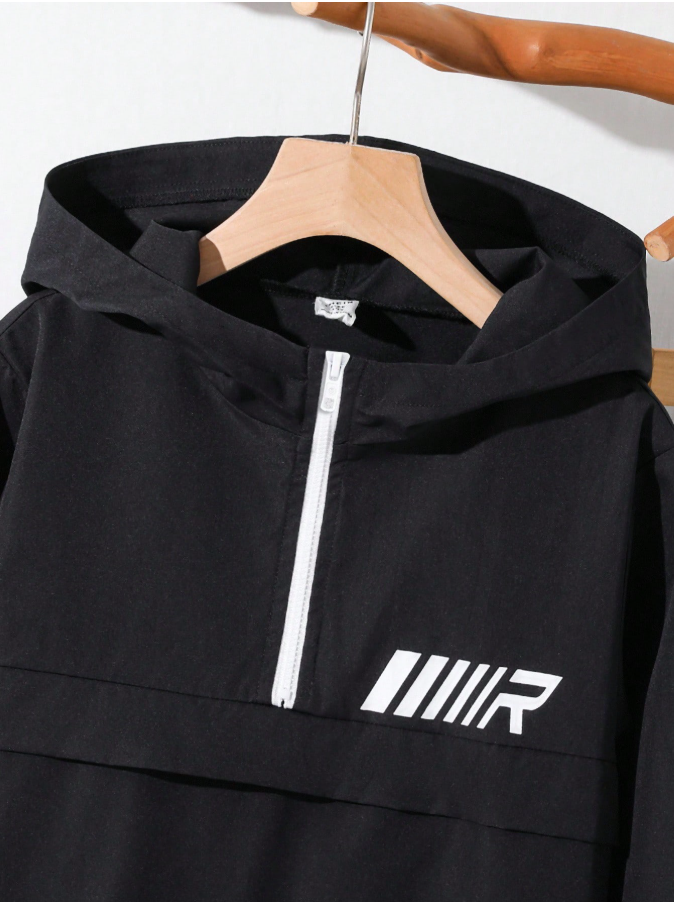 2pcs/Set Teen Boy Letter Print Half-Zip Hoodie Jacket And Elastic Cuff Pants Casual Outfit, Tracksuit For Boys Teens, Sweat Set