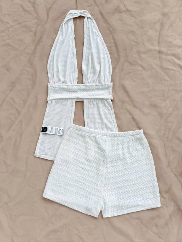 2pcs/Set Women Minimalist Solid Spaghetti Strap Top And Shorts, Sexy Island Vacation Outfits