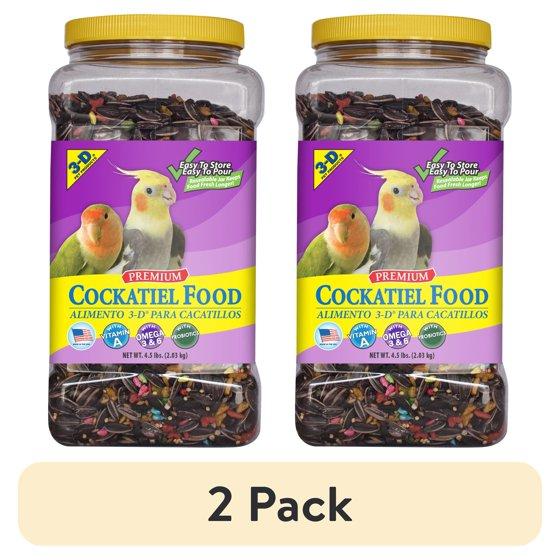 (2 pack) 3-D Pet Products Premium Cockatiel Bird Food Seeds, with Probiotics, 4.5 lb. Stay Fresh Jar