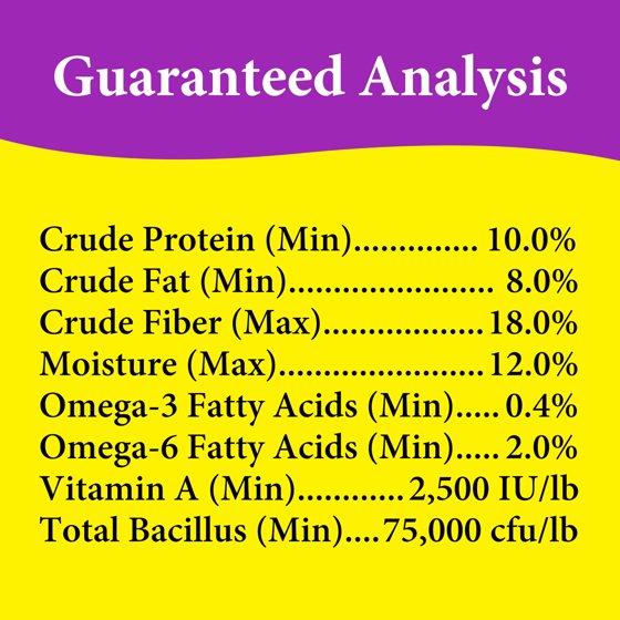 Millet,Sunflower Seed,Oat Groats,Safflower Seed,Canary Grass Seed,Wheat,Buckwheat ,Ground Corn,Ground Wheat,Ground Oat Groats,Soybean Meal,Dicalcium Phosphate,Brewers Dried Yeast,Calcium Carbonate,Dried Cane Molasses,Soybean Oil,Dried Egg Product Flaxseed Meal,Salt,L-Lysine Hydrochloride,DL-Methionine,Vitamin E Supplement,Iron Proteinate,Manganese Proteinate,Stabilized Rice Bran,Ascorbic Acid (Vitamin C),Niacin,Vitamin A Supplement,Fish Oil,Sodium Selenite,Riboflavin Supplement,Pyridoxine Hydrochloride,Thiamine Mononitrate,Menadione Sodium Bisulfite Complex (Source of Vitamin K activity),Biotin Supplement,Dried Lactobacillus Acidophilus Fermentation Product,Dried Lactobacillus Casei Fermentation Product,Dried Bifido Bacterium Thermophilum Fermentation Product,Dried Enterococcus Fermentation Product,Copper Proteinate,Folic Acid,Vitamin B-12 Supplement,Rubbed Sage,Zinc Proteinate,Cobalt Proteinate,Calcium Iodate,Citric Acid (A preservative),Lecithin,Rosemary Extract,Added FD&C Colors (Red #3, Red #40, Titanium Oxide, Yellow #5, Blue #10),Artificial Color