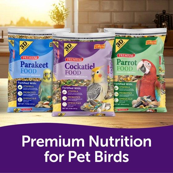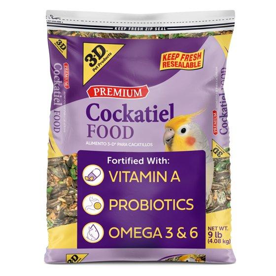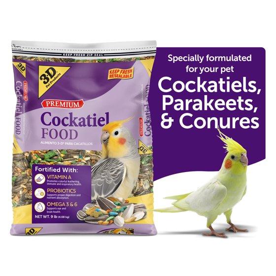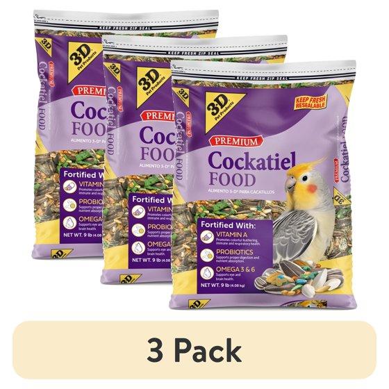 (3 pack) 3-D Pet Products Premium Cockatiel Mix Bird Food Seeds, with Probiotics, 9 lb. Bag
