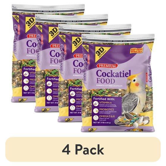 (4 pack) 3-D Pet Products Premium Cockatiel Mix Bird Food Seeds, with Probiotics, 9 lb. Bag