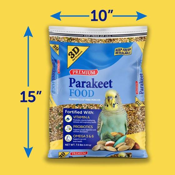 3-D Pet Products Premium Parakeet Bird Food, with Probiotics, 7.5 lb. Zipper Seal Bag, for Daily Feeding