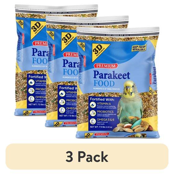 (3 pack) 3-D Pet Products Premium Parakeet Bird Food, with Probiotics, 7.5 lb. Zipper Seal Bag, for Daily Feeding