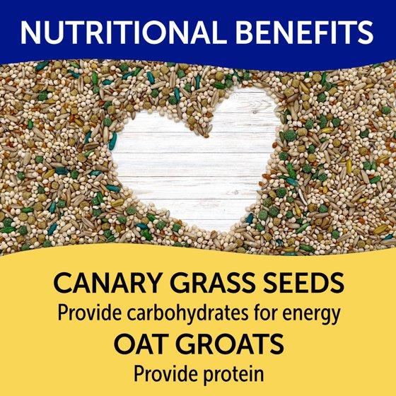 Millet, Oat Groats, Canary Grass Seed, Ground Corn, Wheat, Corn Gluten Meal, Soybean Meal (Source of Omega-3), Brewers Dried Yeast, Dried Cane Molasses, Dried Egg Powder, Soybean Oil, Ground Flaxseed, Fish Oil, Corn Oil, Vitamin E Supplement, Vitamin A Supplement, Vitamin D3 Supplement, Sodium Chloride, Choline Chloride, Vitamin C (Ascorbic Acid), Magnesium Oxide, Niacin, D-Calcium Pantothenate, Sodium Selenite, Riboflavin, Pyridoxine Hydrochloride, Menadione Sodium Bisulfite Complex (Source of Vitamin K Activity), Thiamine Mononitrate, Biotin Supplement, Iron Proteinate, Copper Proteinate, Zinc Proteinate, Manganese Proteinate, Vitamin B12 Supplement, Cobalt Proteinate, Folic Acid, Dried Chicory Root, Ethylenediamine Dihydroiodide, Calcium Iodate, Mixed Tocopherols (A Preservative), Silicon Dioxide, Citric Acid (A Preservative), Rosemary Extract, Soy Lecithin, FD&C Yellow No. 5, FD&C Blue No. 1