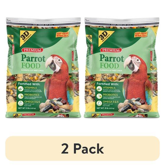 (2 pack) 3-D Pet Products Premium Parrot Bird Food Seeds, with Probiotics, 8 lb. Bag, Dry