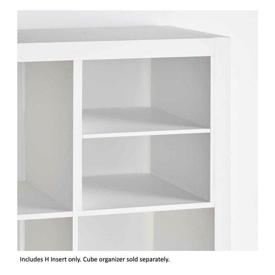 Unlock the full potential of cube storage with the Better Homes & Gardens H Shelf Cube Organizer Insert and the rest of Better Homes & Gardens’ line of cube organizer accessories and inserts. The H divider is designed to fit seamlessly into Better Homes & Gardens Cube Storage Organizer (sold separately) compartments. Effortlessly divide a cube shelf, horizontally or vertically, into two functional sections, to make the most of every inch of available space.