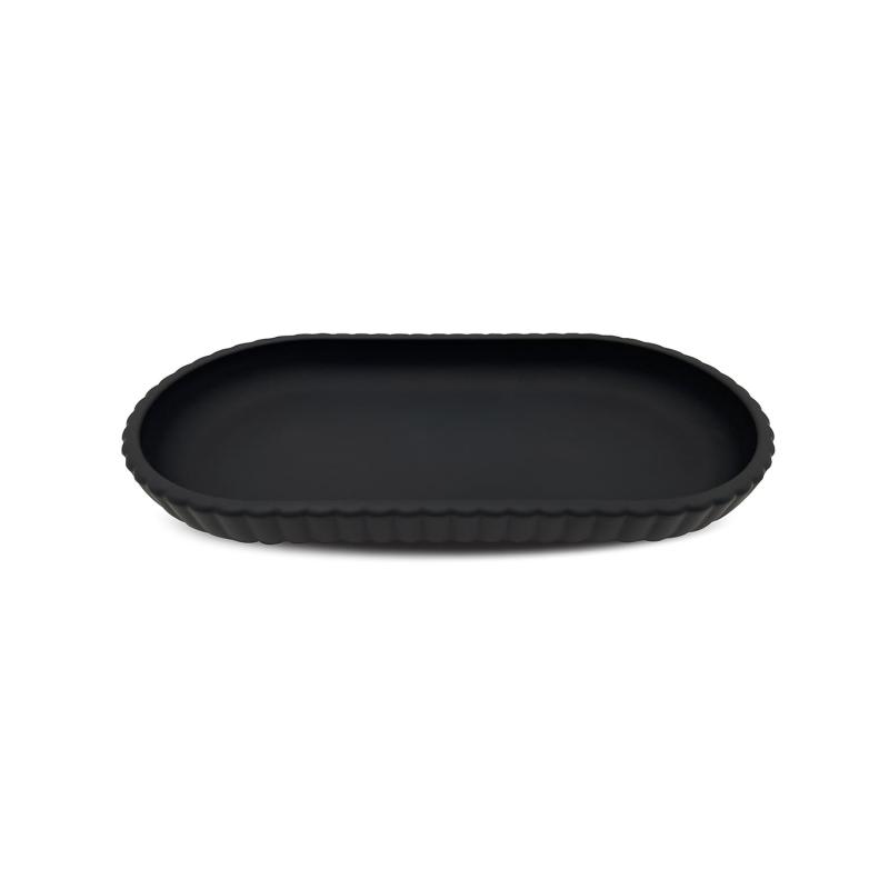 - The Mainstays Rubberized Plastic Ribbed Accessory Tray features a unique ribbed design that adds a touch of sophistication and modern flair to your bathroom decor.