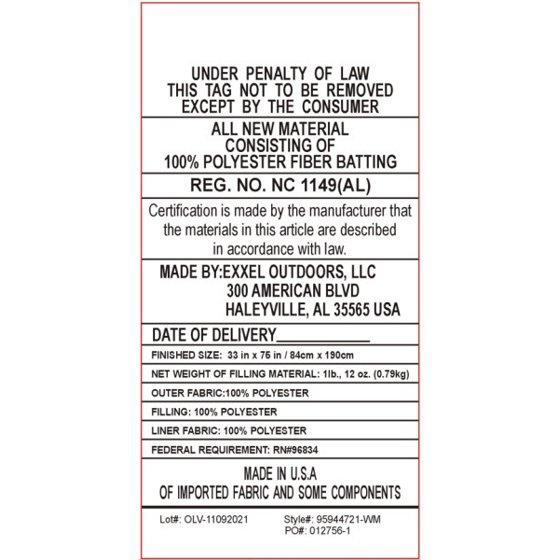 • Sleeping Bag Dimensions: 33" W x 75" L