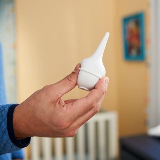 - Gentle suction clears baby’s breathing passages