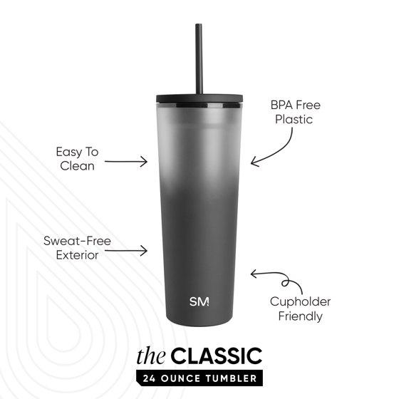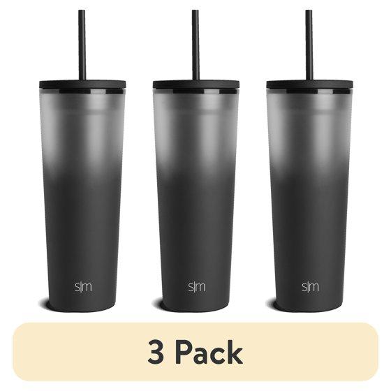 (3 pack) Simple Modern 24 fl oz Double Wall Plastic Classic Tumbler with Lid and Straw | Midnight Black