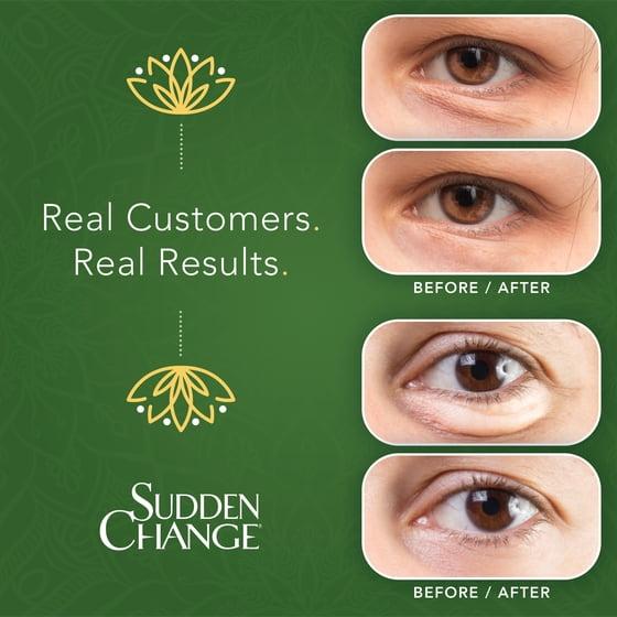 - Lines, wrinkles & puffiness disappear in just 3 minutes. For delicate eye area, use daytime or evening to look your best. Last for hours! Sudden Change Serum works unlike anything you have ever used before to make the appearance of wrinkles, lines and puffiness disappear. For a temporary, under-eye lift whenever you need it. This Unique Quick Acting Formula Visibly Smoothes Away: under-eye lines; wrinkles; puffiness; can be used with or w/o foundation; lasts for hours. Results guaranteed (If you notice a dry, white residue on your skin after the serum has dried, moisten your finger slightly and pat the residue lightly until it disappears). For additional directions or information call 1-800-595-6230 or visit www.SuddenChange.com. CCA: Core Care America. Committed to healthy & beauty. Facebook.