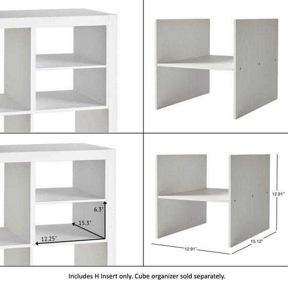 Unlock the full potential of cube storage with the Better Homes & Gardens H Shelf Cube Organizer Insert and the rest of Better Homes & Gardens’ line of cube organizer accessories and inserts. The H divider is designed to fit seamlessly into Better Homes & Gardens Cube Storage Organizer (sold separately) compartments. Effortlessly divide a cube shelf, horizontally or vertically, into two functional sections, to make the most of every inch of available space.