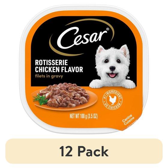 (12 pack) Cesar Fillets In Gravy Rotisserie Chicken Wet Dog Food, 3.5 Oz Tray