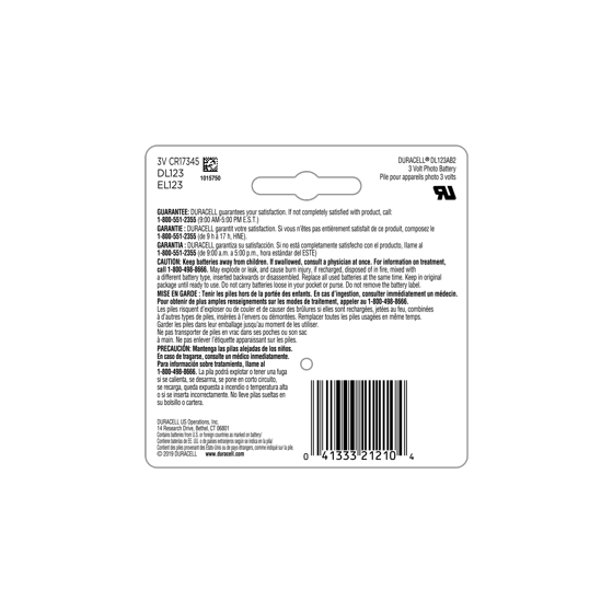 - The Duracell CR123A 3 Volt High Power Lithium battery is designed to provide reliable power to devices like home safety and security devices, high-intensity flashlights, home automation, and more. Duracell 123 High Power Lithium batteries are guaranteed for 10 years in storage, so you can be confident these batteries will be ready when you need them. From storm season to the holidays, Duracell is the #1 trusted battery brand.
