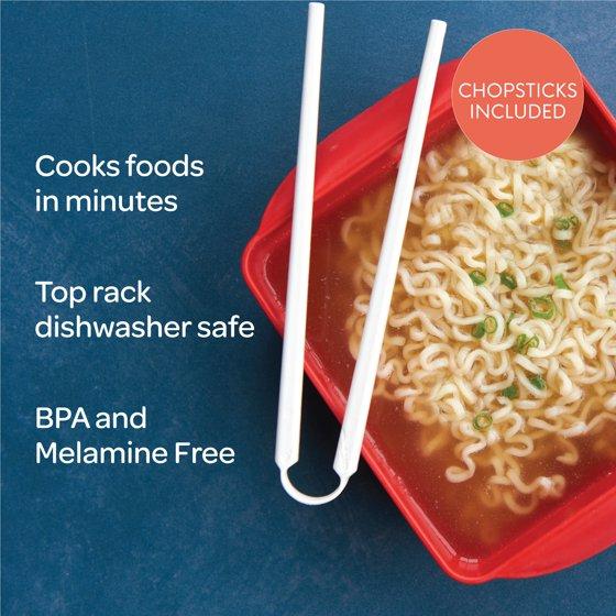 (4 pack) Nordic Ware Microwave Plastic Ramen Rush Cooker with Chopsticks, Red, 7.25" x 5.5" x 2.75"