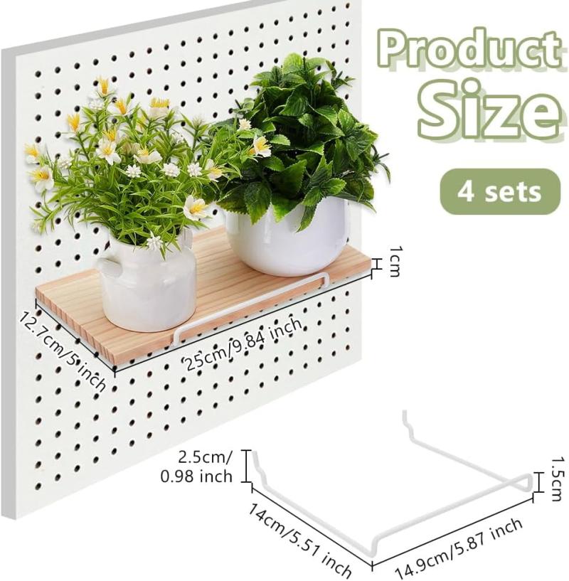 4 Pack Wood Pegboard Shelves Wooden Pegboard Shelves with Pegboard Shelf Brackets Solid Wood Pegboards Shelf Wall Organizer Shelving