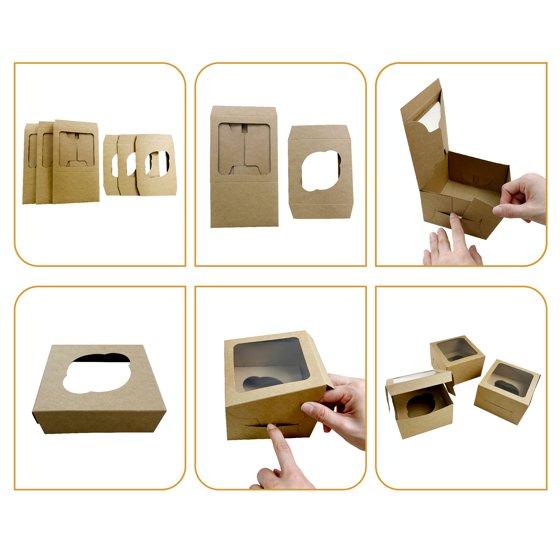 - Way To Celebrate 4.5" x 4.5" x 3" Kraft Treat Boxes with Window, 3 Count