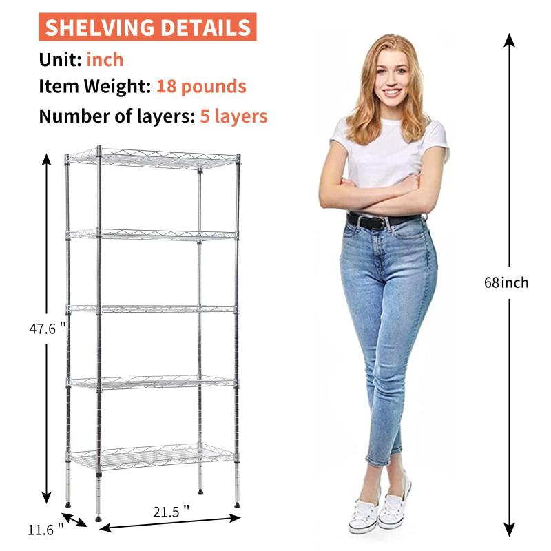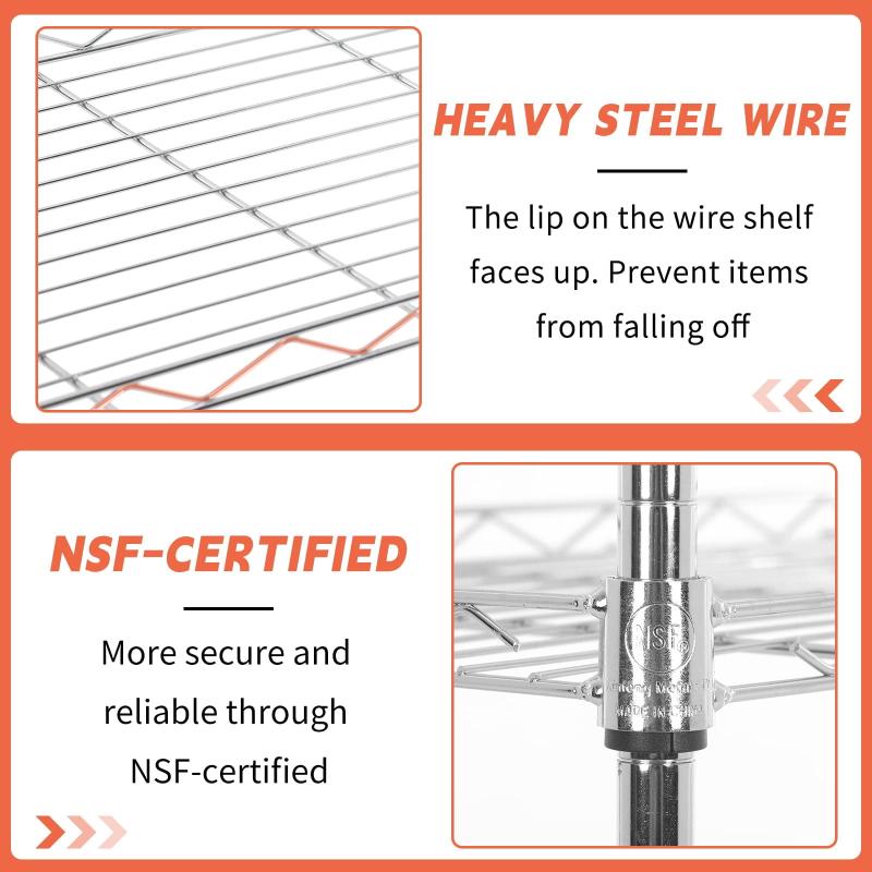 - 👍【Great Material】The wire shelving unit is made of heavy steel and the surface of the shelf has an anti-corrosion and rust-proof coating. Our metal shelves is ideal for kitchen and bathroom storage, easy to wipe clean.
