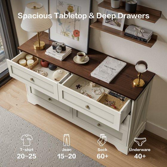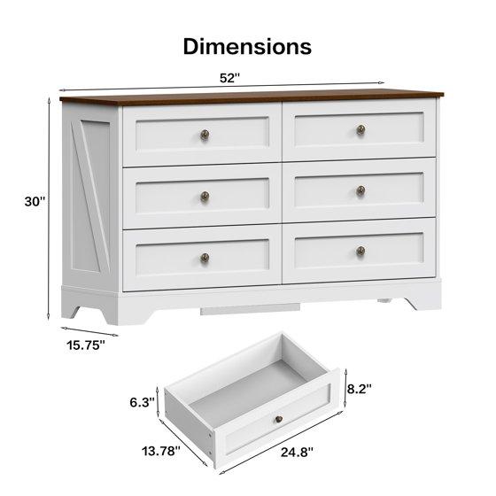 This farmhouse 6-drawer dresser combines large storage capacity with versatile use, serving as a dresser, sideboard, or storage cabinet for bedroom, living room, or hallway. Crafted from durable materials with elegant metal handles, it blends rustic charm with modern farmhouse style. The sturdy construction and included anti-tip kit ensure safety, while step-by-step illustrated instructions make assembly simple and hassle-free. With its spacious drawers and stylish design, this dresser keeps your home organized, clutter-free, and beautifully furnished.