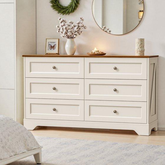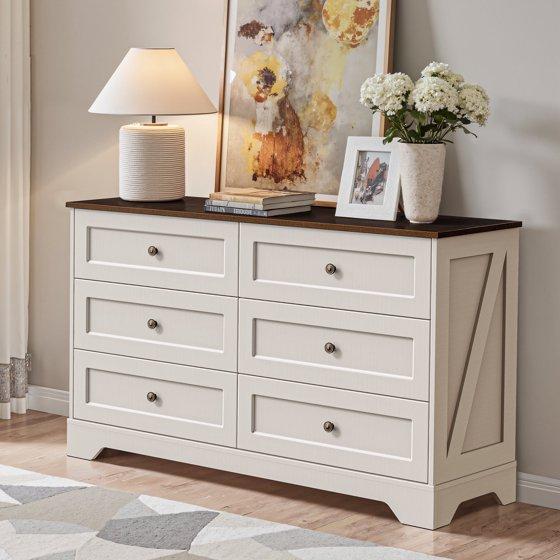 - 【Large Storage Capacity】This farmhouse 6-drawer dresser is designed with oversized drawers that provide plenty of space to neatly store and organize clothing, blankets, accessories, or daily essentials. With its generous capacity, it helps keep your bedroom tidy and clutter-free while also serving as a functional storage solution for any living space.