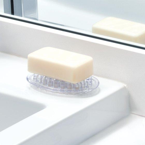 Organize your bathroom vanity in style with the Mainstays Chloe Bar Soap Saver. Designed with style and function in mind, this set of two soap holders keeps it at hand near the sink while also protecting the counter from soap residue and excess water. This versatile soap saver can also be used by the kitchen sink. Featuring a modern design and transparent finish, this sink organizer matches a variety of home and bathroom decor styles. It is also stain-resistant for long-lasting use.