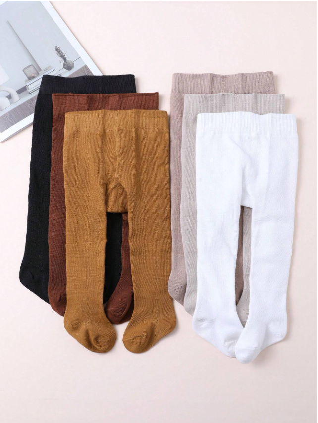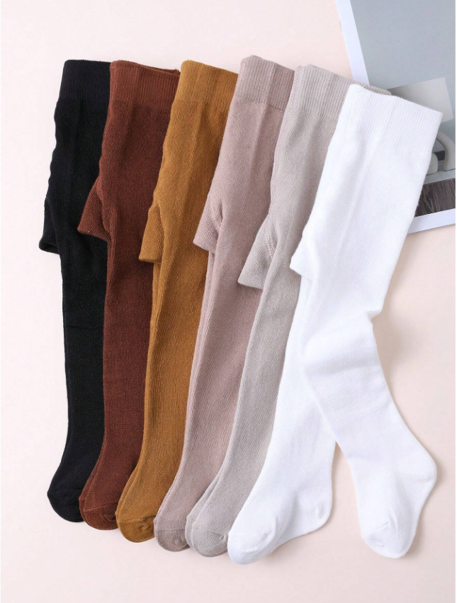 6 Pairs Girls Plain Color Tight Pantyhose, Versatile And Suitable For Daily Wear For Children Aged 0-12