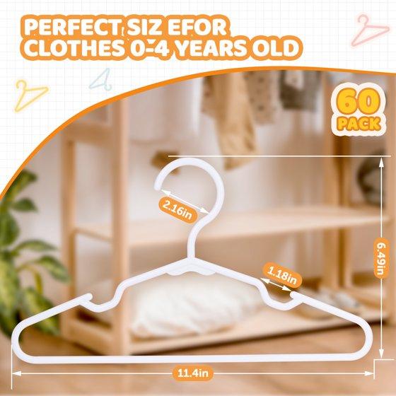 - With an extra large capacity of 60PCS loaded, you can stop worrying about having too many clothes to hang. And the extra hangers can also be used to hang adult sling clothes. The hanger size 11.4x6.5inch is perfect for children's clothes. It is a suitable gift for newborn babies, can be used as Christmas, Halloween gifts.